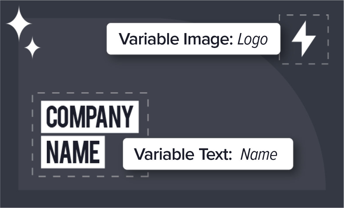 Add variable fields to design and video templates that can be populated programmatically with text, media, colors and more for creative automation.